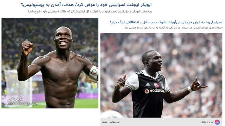 یک ماه پیش در آستانه مذاکرات دو باشگاه ایرانی تراکتور و استقلال با بازیکن کامرونی 33 ساله وینسنت ابوبکر، خبر ورزشی با انتشار اطلاعاتی مدعی شد که این بازیکن تحت قرارداد یک شرکت اسراییلی است.
