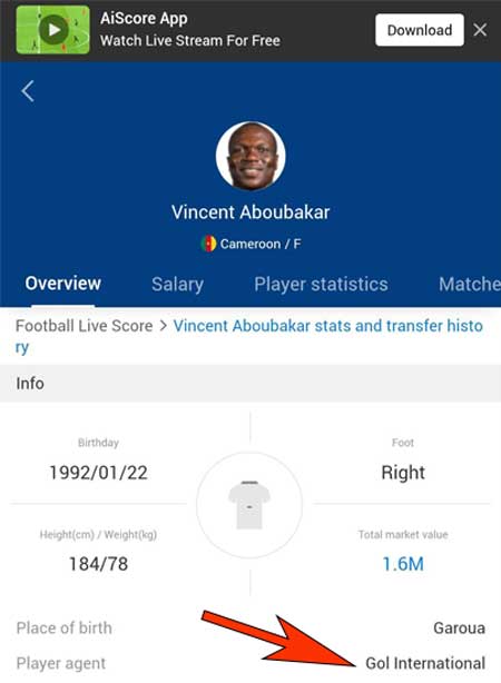 بدون شک این دلسوزی های مستمر پس از دستکاری پروفایل ترانسفر مارکت برای سفید شویی خبر قبلی رخ داده است، چون در بررسی های انجام شده سرویس خبری واندا اسپورت اطلاعات بازیکن کامرونی در پلت فرم Ai Score بدون دستکاری بوده و نشان می دهد، وینسنت ابوبکر هنوز تحت قرارداد شرکت گل اینترنشنال بوده و هیچ تغییری در شرکت تحت قرارداد او به وجود نیامده است.