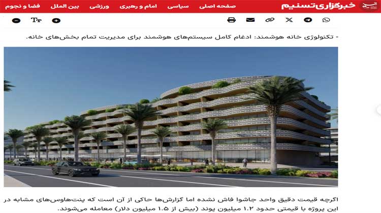 اینکه رسانه ها باهوش باشن و رپرتاژ آگهی بزنند خیلی خوب هست ولی بر و بکث تسنیم مرزهای خلاقیت رو منهدم کردن و با ساخت خبر فیک یا احتمالا به سفارش برای پروژه قصر آسمانی در شهر جدید سلطان هیثم خیلی شیک بازاریابی لاکچری کردند.